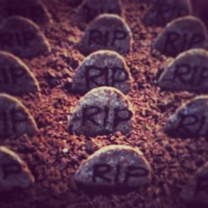 A kekszeket kettétöröm, megrajzolom őket, mintha sírkövek lennének (pl. RIP), és amikor megszáradt a felirat, tálaláskor sorban beleszúrom a csokoládéreszelékbe, mintha temető lenne.